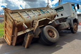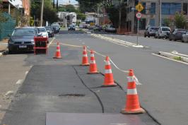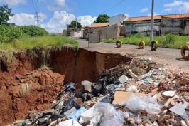 Erosão engole parte do asfalto de rua e preocupa moradores