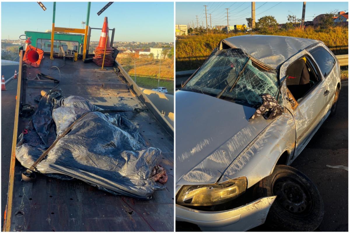 Carro capota na rodovia Fábio Talarico, em Franca