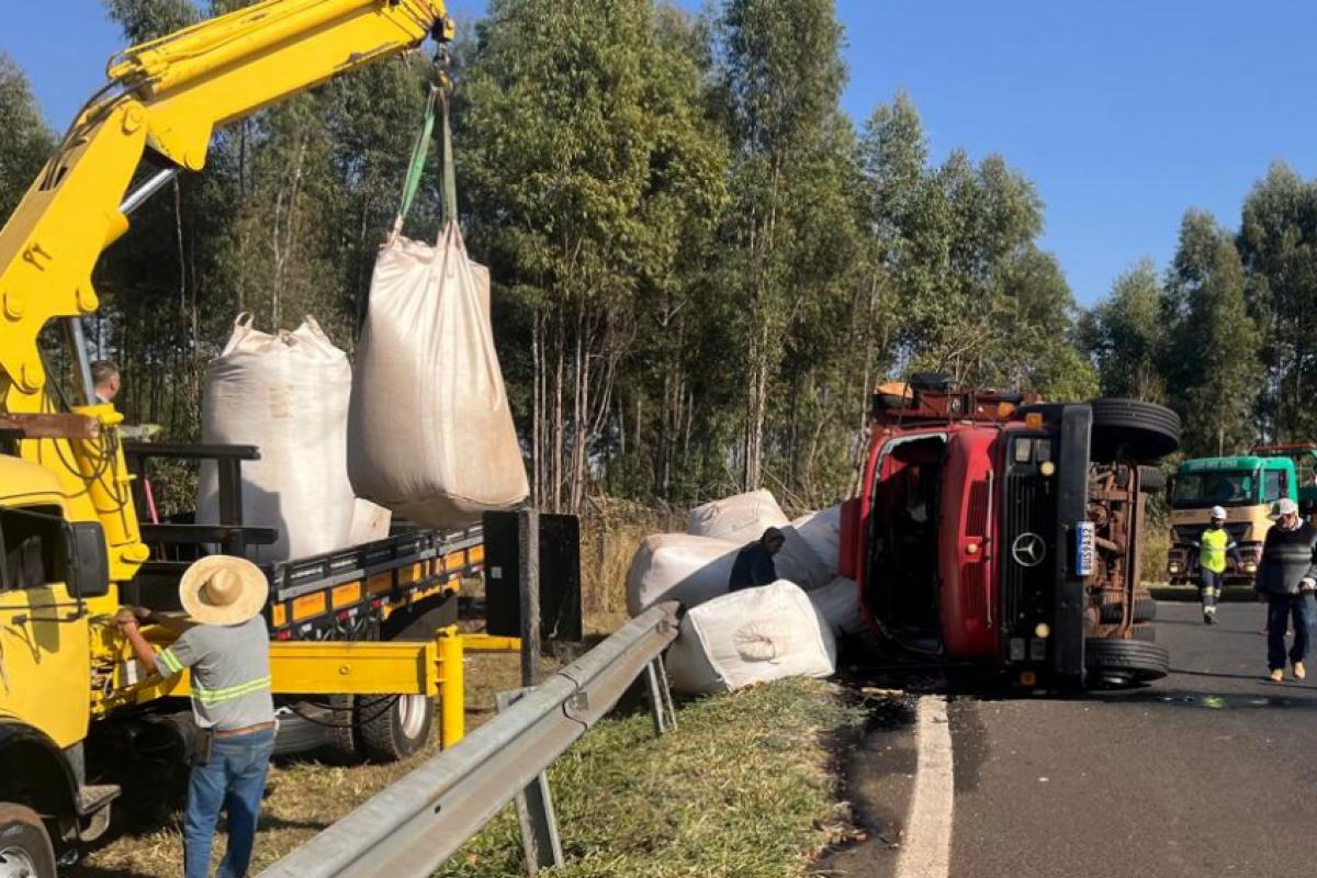 Franca: carreta tomba em alça de acesso no Distrito Industrial