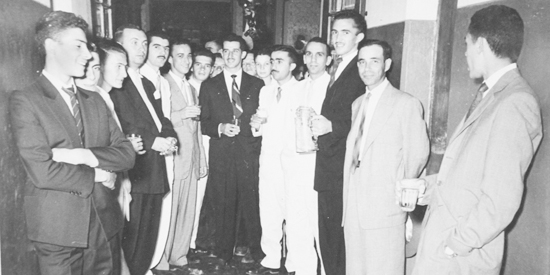 Esta outra ótima colaboração chega do meu leitor e amigo Joel Prado. Calcula-se que seja do começo dos anos 60, quando de uma reunião social no Hotel Francano. Da esquerda para a direita, Hugo Garcetti, depois, o terceiro é o Betinho Jacobini, em seguida Orlando Furini, Cícero de Castro, Joel, Armando Melani, Agostinho Vilhena, Michel Bittar, Nagibinho, Rached e Bordignon. As colaborações podem ser enviadas por e-mail para valdes@difusora.com.br ou uma foto original de papel (como esta), que será devolvida.