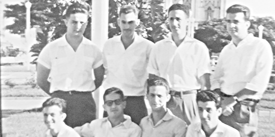 Recebo do leitor e amigo Dagher Abrahão esta colaboração muito interessante. Era um grupo de jovens amigos da época, isso no mês de abril de 1960 no interior da Praça N.S. da Conceição. Em pé, sempre da esquerda para a direita: Waldir Bittar, José Olavo (Zé Bichinho), Dagher Abrahão e Djalma Bittar. Sentados: Batatinha, Álvaro Azzuz, Samir Bittar (Nenê) e José A. Miné. Reparem que a Catedral não tinha ainda sido pintada.