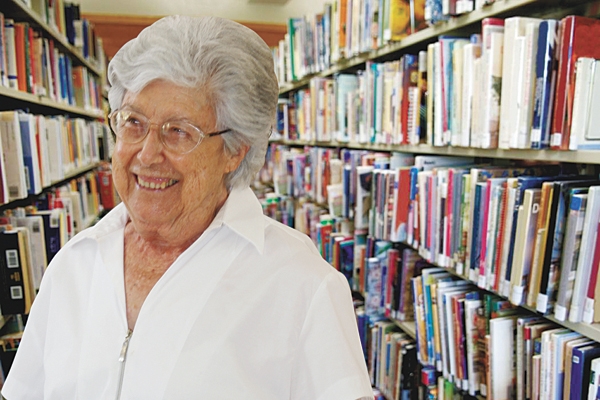 Uma bela figura magrinha e baixinha, em calças claras, uma bata amarelo-ovo, com florezinhas bordadas, cabelos aparados curtinhos, algodoados e bem assentados, no seu rosto a brilhar um sorriso que não se apaga.