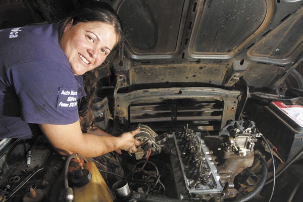 Mesmo trabalhando numa fábrica de palmilhas, nos fins de semana Solange começou a ajudar o marido na oficina mecânica do sogro, e tomou gosto pela graxa e pelo motor dos carros. Há três anos, passou a trabalhar exclusivamente como mecânica e faz questão de ressaltar que tem diploma. “Fiz um curso técnico para aprimorar meu conhecimento. Agora pretendo estudar injeção eletrônica”, diz, reconhecendo que, às vezes, sofre preconceito. “Os clientes mais ‘turrões’ ficam desconfiados. Então, mexo no carro só na ausência deles. Quando eles chegam, meu marido toma a frente”, conta ela, rindo.