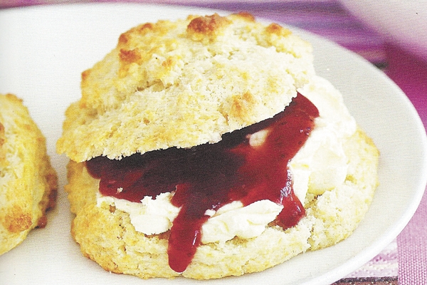 Scones é nome inglês de um bolinho muito consumido na Inglaterra. É palavra que pode ser pronunciada de três formas: ‘scouns”, “scons’, “scuns”. Geralmente é servido no chá da tarde, um hábito na Inglaterra. Naquele país, até o século 18, era costume servir apenas duas refeições ao dia: o café da manhã e o jantar. Entre um e outro, o chá da tarde virou uma forma de enganar a fome. Mas não pense que é apenas uma xícara de chá ; ela é acompanhada por sanduíches, bolos, doces, trufas, bolachas, pãezinhos, geleias e... scones.