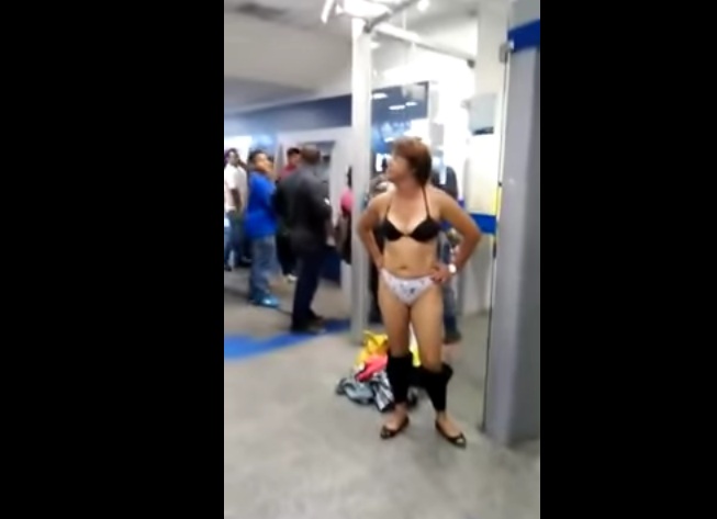 Indignada por não conseguir entrar em uma agência da Caixa Econômica Federal nesta segunda-feira, dia 14, Maria da Conceição, de 53 anos, tirou a roupa para mostrar que não carregava nada de irregular. Mesmo assim ela foi impedida de entrar na agência bancária que fica em Cabo Frio, no Rio de Janeiro.