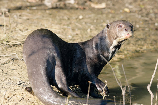 Durante a caça a ariranha emprega sua boa visão para procurar comida. Olfato e audição bem apurados também ajudam a encontrar alimento nas águas escuras dos rios em que esses bichos se estabelecem.