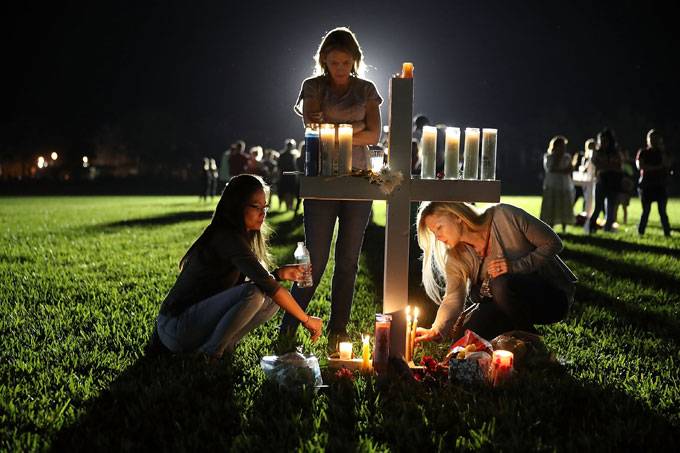Milhares de pessoas se reuniram na quinta-feira em uma vigília em lembrança dos 17 mortos no massacre realizado no dia anterior por Nikolas Cruz na escola de ensino médio Marjory Stoneman Douglas, em Parkland, na Flórida (Estados Unidos).