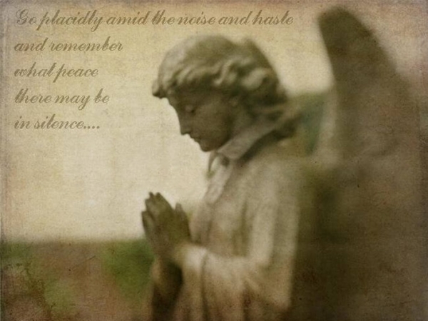 “Ande calmamente entre a inquietude e a pressa e lembre-se da paz que existe no silêncio. Tanto quanto possível, sem humilhar-se, viva em harmonia com todos que o cercam. Fale a sua verdade, mansa e calmamente e ouça a dos outros, mesmo a dos insensatos e ignorantes – eles também têm a sua história.