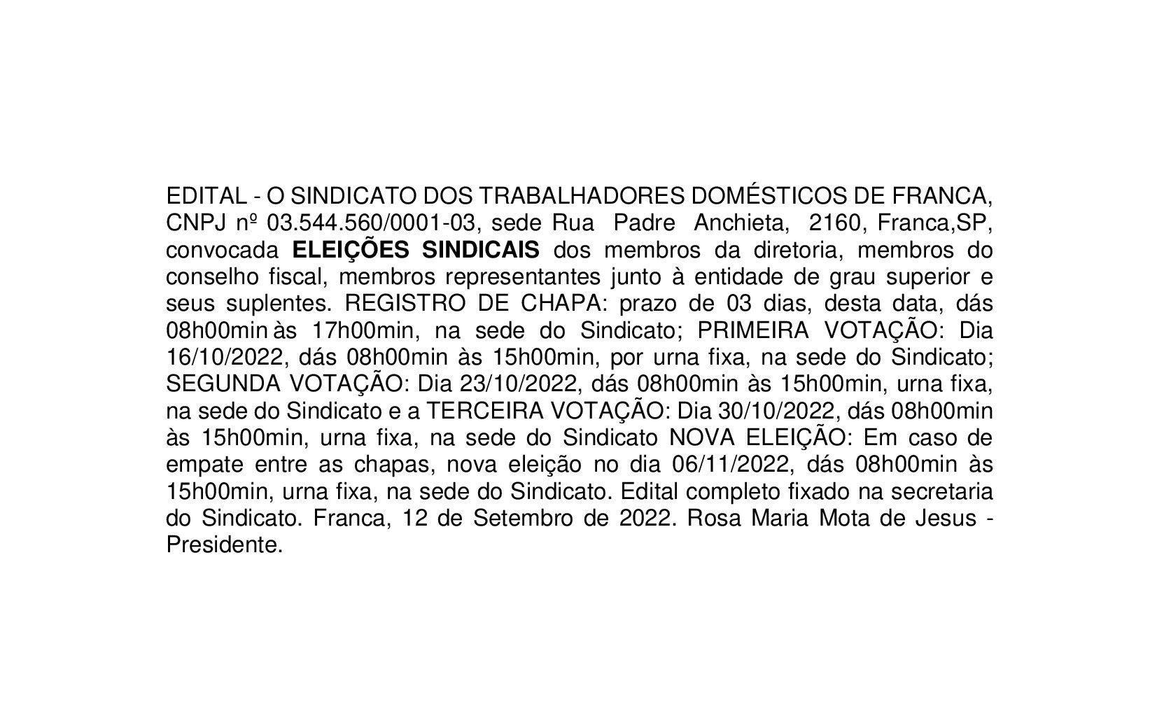 Edital Sindicato dos Trabalhadores Domésticos de Franca Por | 13.09.2022 10h19 | Tempo de leitura: < 1 min Certificado: Google Cloud Facebook Whatsapp Twitter Comentários Comentários Enviar