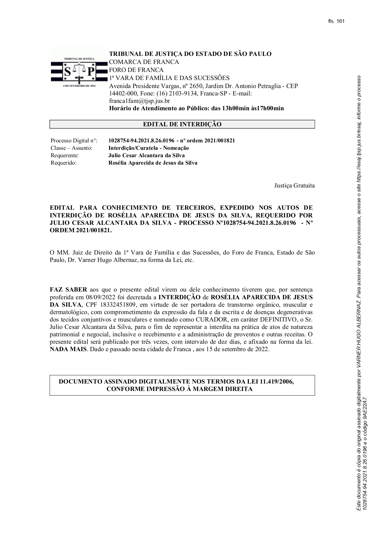 Edital Edital de Interdição Por | 19.09.2022 13h34 | Tempo de leitura: < 1 min Certificado: Google Cloud Facebook Whatsapp Twitter Comentários Comentários Enviar