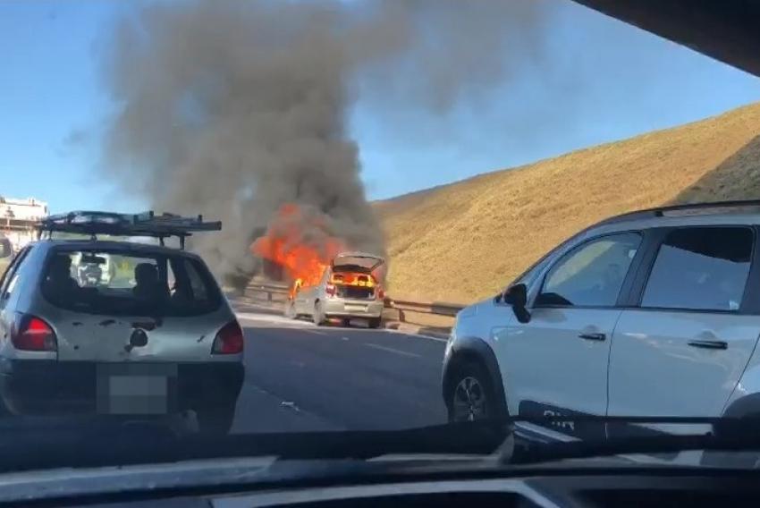 Na sequência, ele se distanciou e um incêndio tomou conta de todo o automóvel. Por conta do incêndio, o trânsito teve uma pequena lentidão.