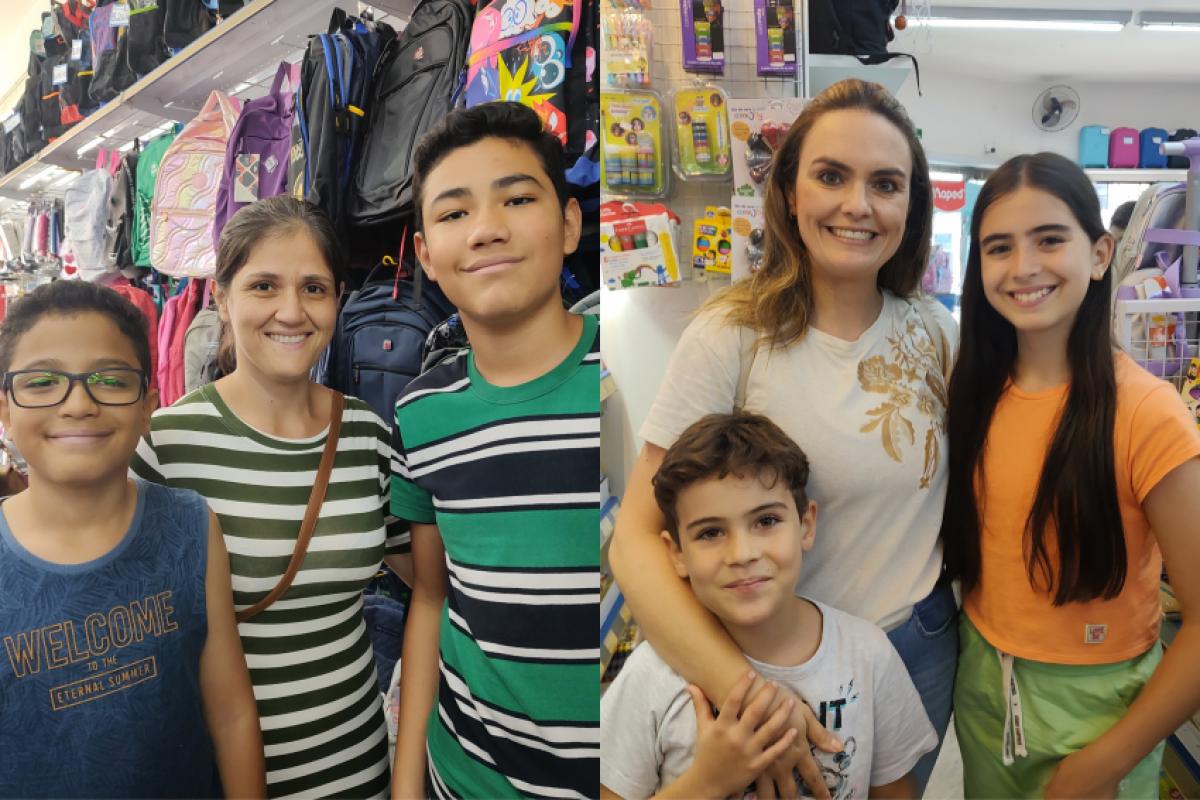 Na mesma loja, também comprando seus materiais junto da mãe estavam Mariá Telles Duarte, de 12 anos, e o irmão mais novo, Miguel Telles Duarte, de apenas 7 anos. Miguel não disfarçava a empolgação e contou sobre estar bastante ansioso para voltar às aulas, assim como a irmã, que não via a hora de comprar todos seus materiais.