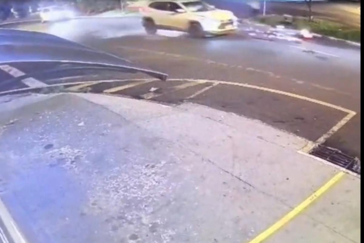Imagens de uma câmera de segurança mostram o momento da batida. No vídeo, é possível ver que a moto segue pela rua e, ao chegar ao cruzamento, a condutora não para.