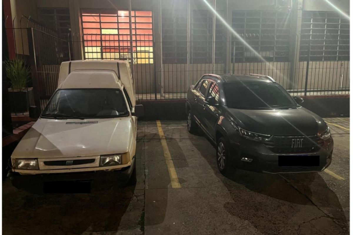 Os militares conseguiram verificar a numeração real do veículo, que usava uma placa falsa. A Fiorino, por sua vez, tinha sido furtada em abril de 2025.