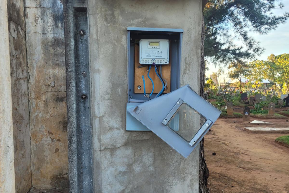 Foram furtados cabos de energia do poste que abastece o prédio.