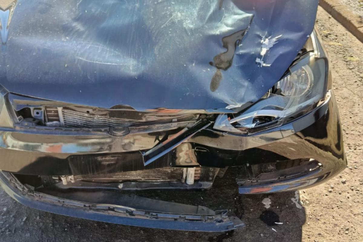 O veículo apresenta danos visíveis, incluindo capô e para-brisa completamente destruídos, além da ausência da placa frontal, o que dificultou a identificação imediata do carro.