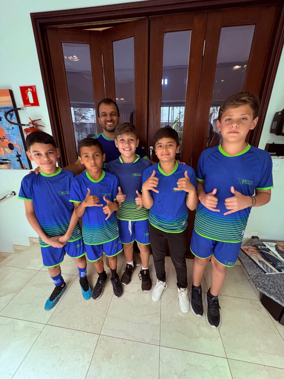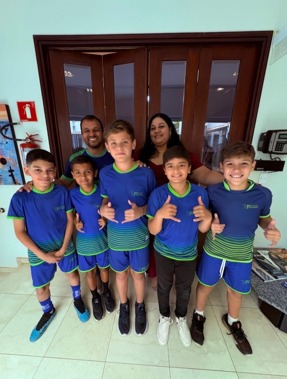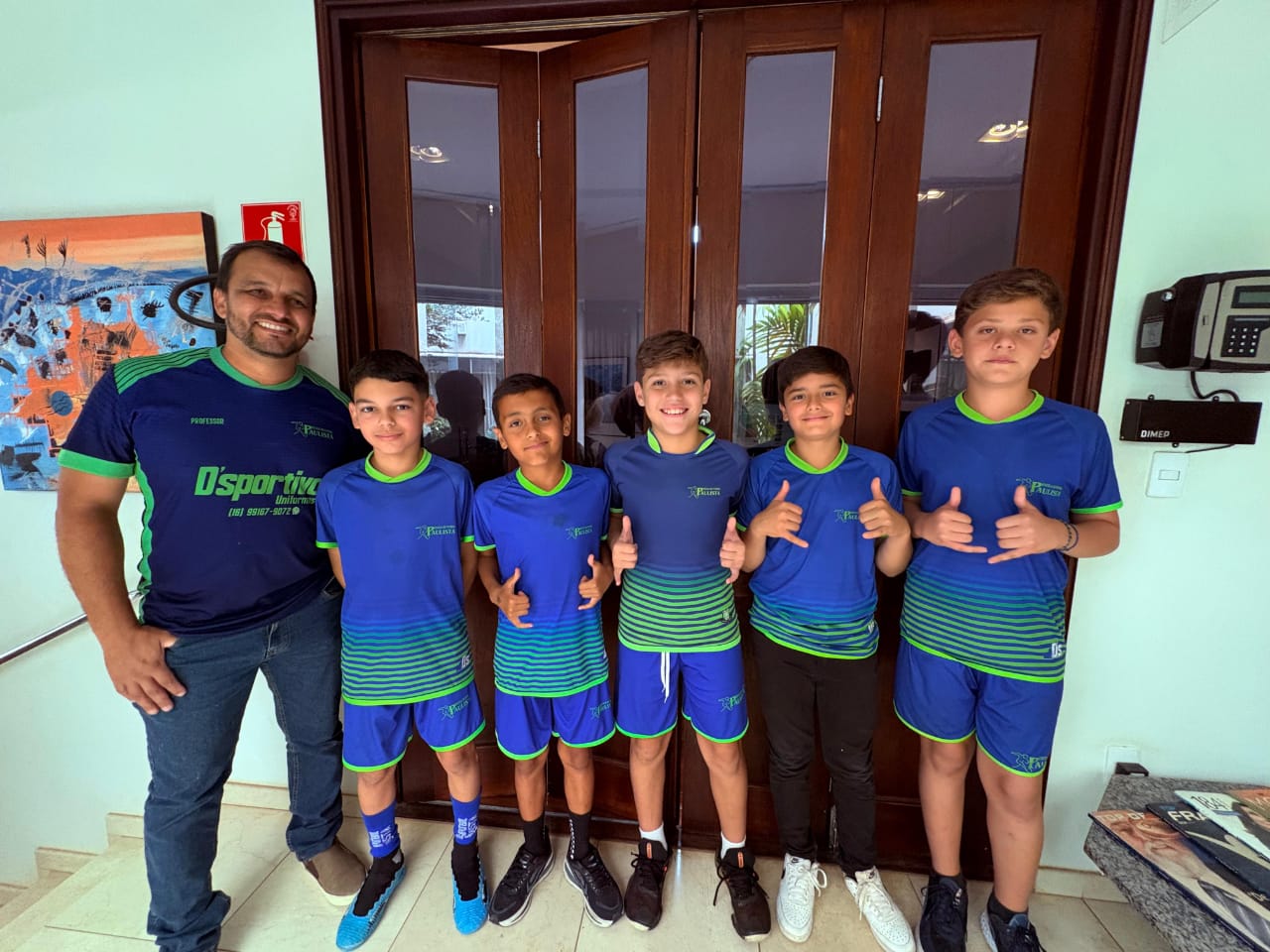 Os atletas Ricardo (sub-11), Enzo (sub-11), Bruno (sub-13), Miguel (sub-11) e Jefferson (sub-13) representaram a escola que atende criaças e adolescentes de 4 a 15 anos, contabilizando um total de 300 alunos no momento.