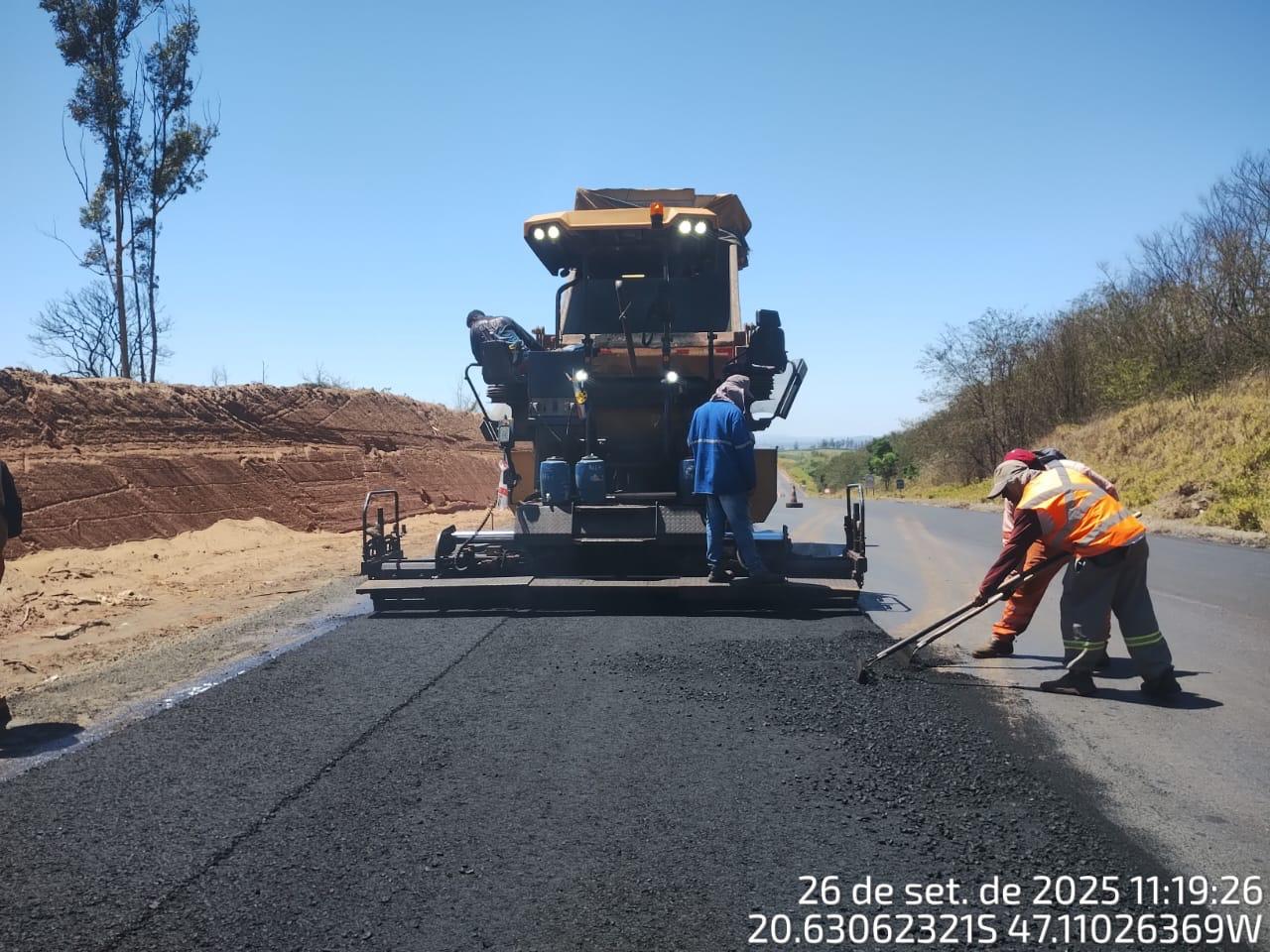 Segundo o DER-MG, as obras começaram em dezembro de 2024 e devem ser concluídas até 28 de fevereiro de 2026. Até agora já foram concluídos o recapeamento de 5 quilômetros da via e a implantação de 4,8 quilômetros de terceiras faixas. As obras seguem em fase final com a terraplanagem dos 700 metros restantes, com remoção de material rochoso.