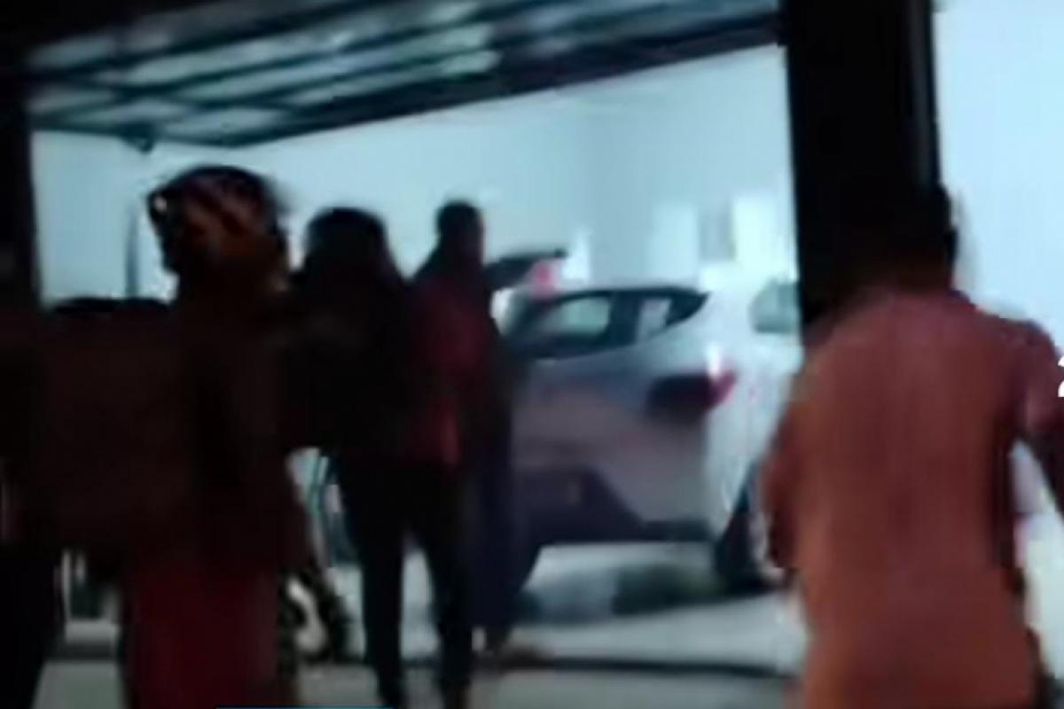Cerca de 30 pessoas arrombaram o portão basculante da residência e quebraram os vidros, lanternas e danificaram a lataria do veículo que estava na garagem, além de arremessar pedras e objetos dentro do imóvel.