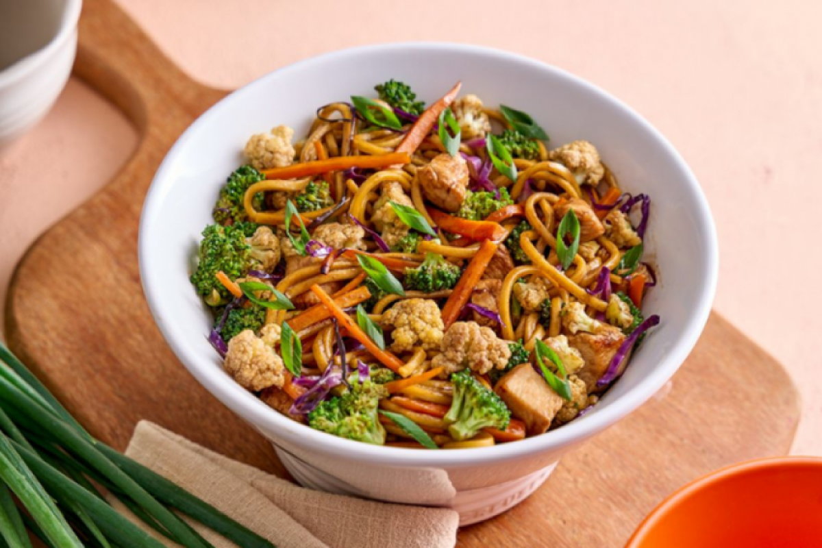 A porção de yakissoba tem 700 gramas, e serve duas pessoas, aproximadamente.