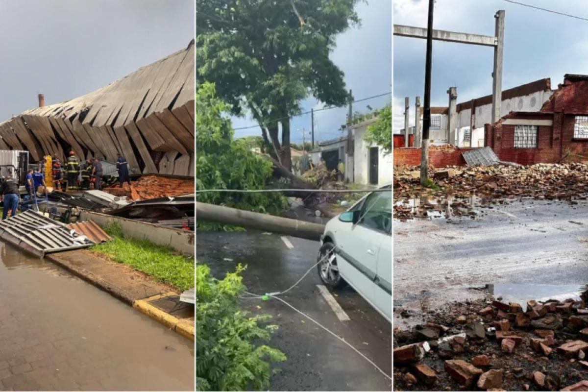 Várias lojas tiveram letreiros, toldos e luminosos arrancados ou danificados. No estádio do Internacional da Estação parte do telhado da arquibancada desabou. Não havia movimento de frequentadores no momento da chuva.