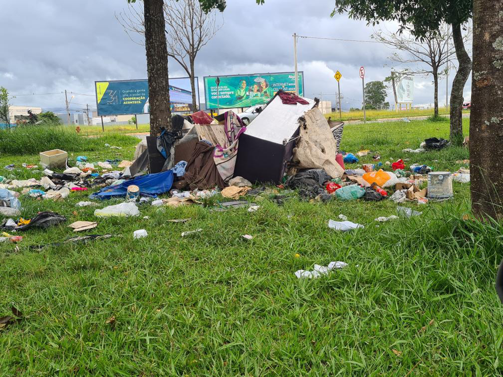 A situação teria se agravado nos últimos cinco meses. O local, que inicialmente abrigava apenas uma barraca, passou a ser utilizado para o acúmulo de resíduos.