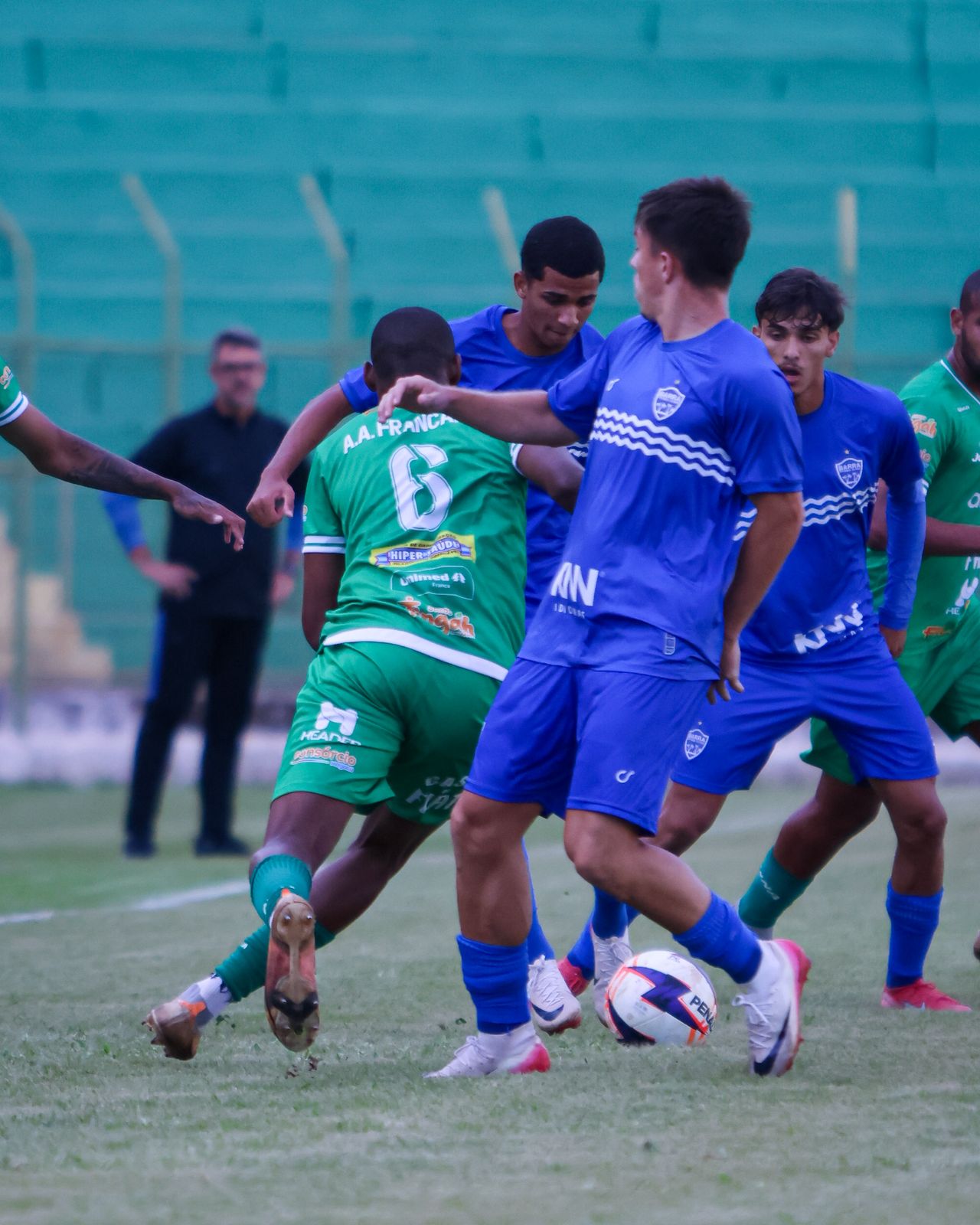 O primeiro tempo foi disputado sem muitas emoções, com nível técnico abaixo do esperado. A Francana esperava o Barra mais ofensivo, que precisava da vitória. A única chance real de gol da Veterana foi aos 39 minutos, com o atacante Jhon, que ganhou na corrida, mas chutou para fora.