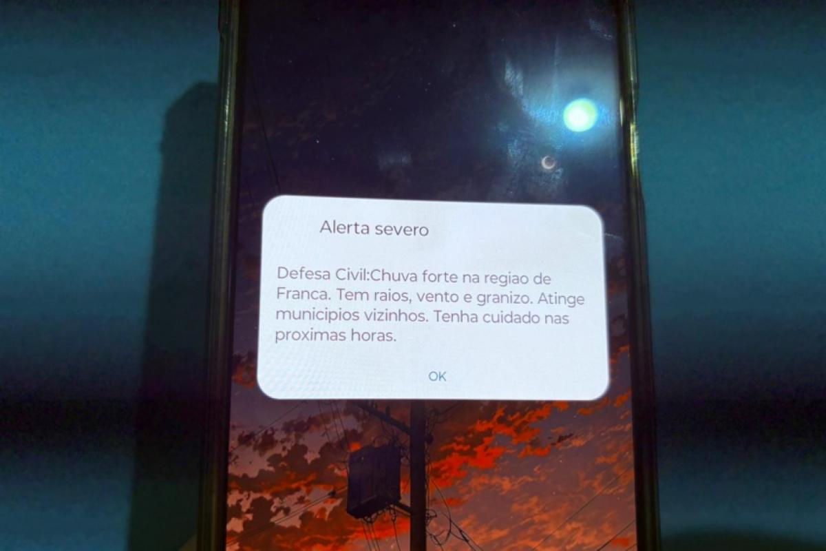A Defesa Civil do Estado de São Paulo emitiu um alerta nos celulares dos moradores de Franca durante a tempestade que atingiu a cidade na tarde desta segunda-feira, 12.