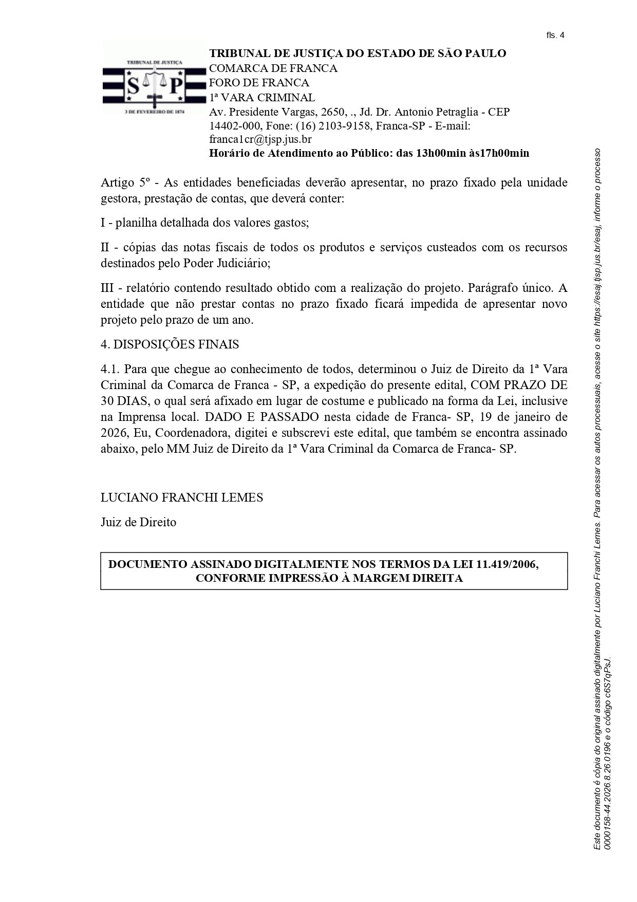 Edital Edital de Citação - Processo nº. 0000158-44.2026.826.0196 Por | 19.01.2026 14h59 | Tempo de leitura: < 1 min Certificado: Google Cloud Facebook Whatsapp Twitter Comentários Comentários Enviar