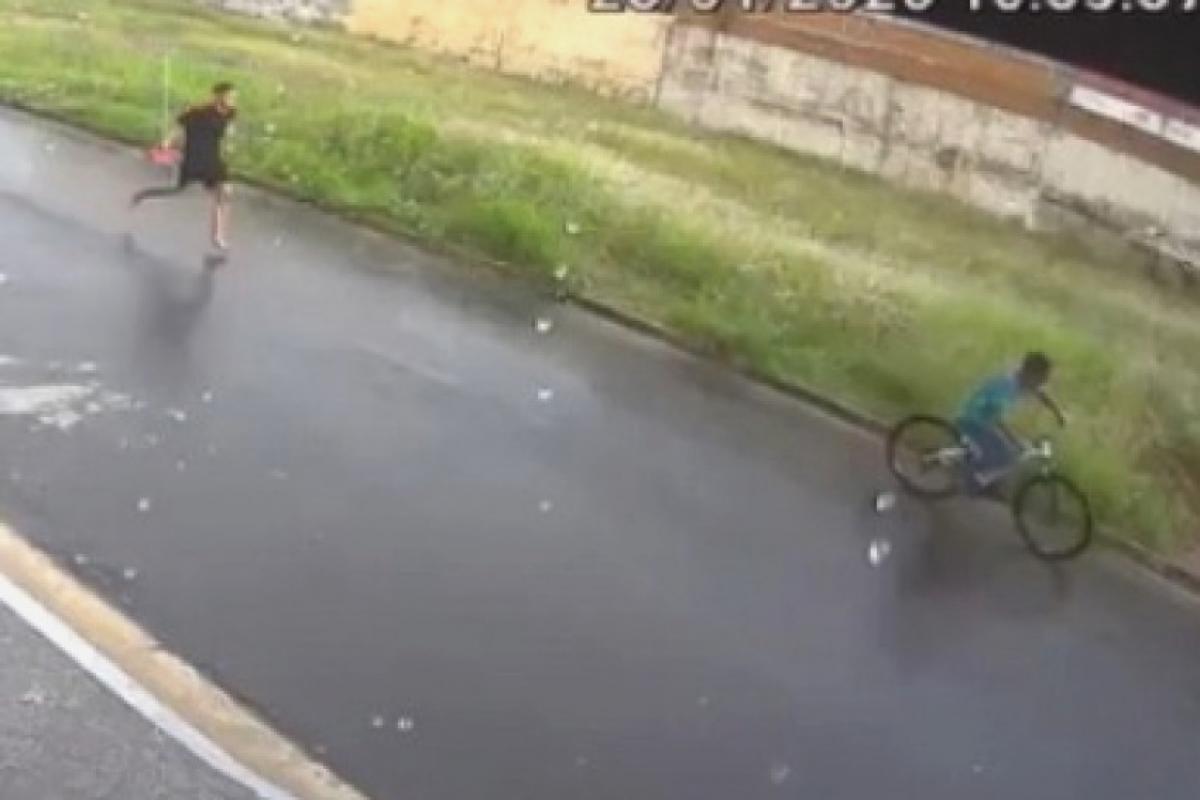Ao perceber o furto, um jovem tentou correr atrás do ladrão, utilizando um cabo de vassoura, na tentativa de recuperar a bicicleta. Câmeras de segurança registraram o criminoso fugindo. Mas, apesar da perseguição, o ladrão conseguiu fugir.