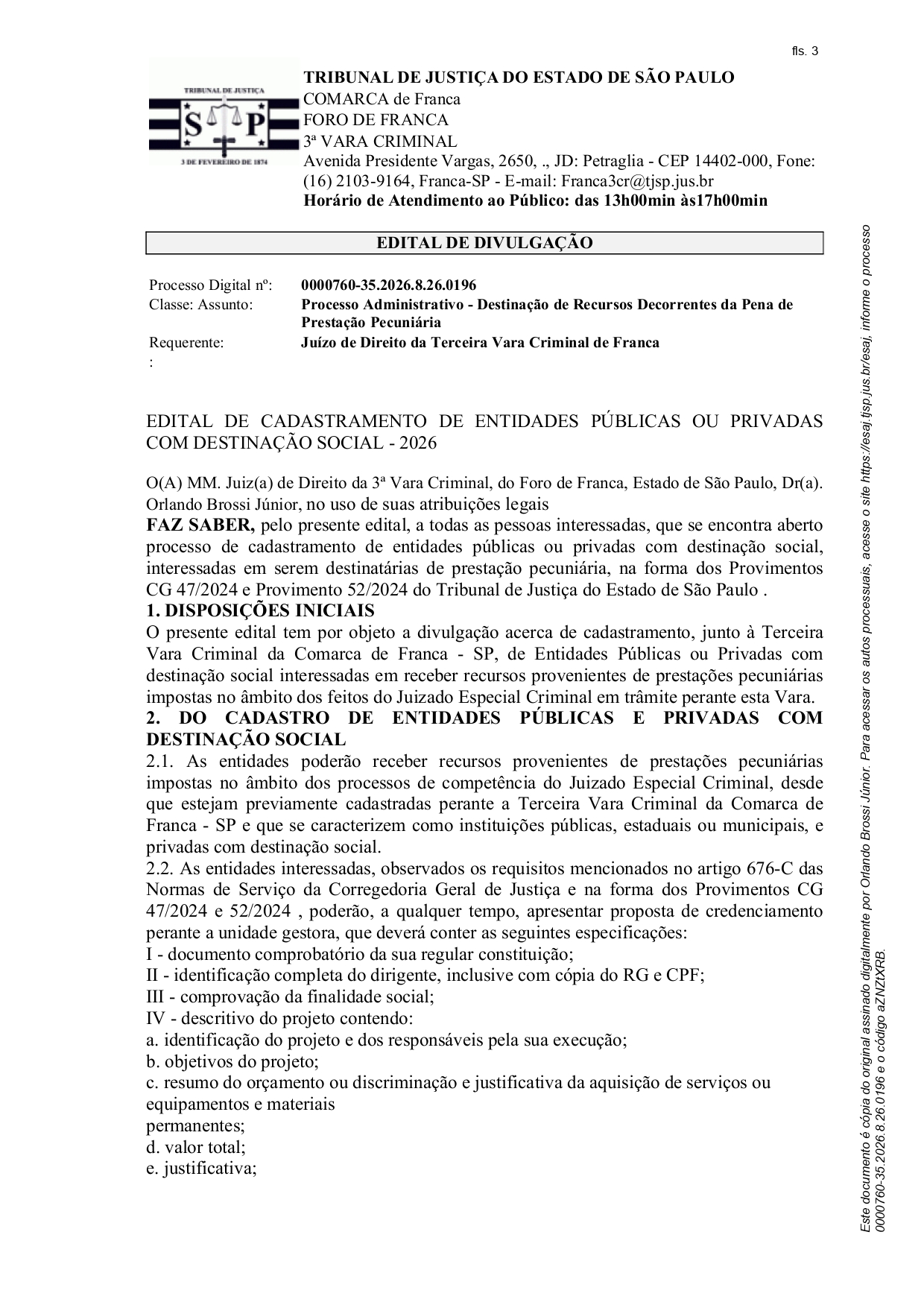 Edital Edital de Divulgação - Processo nº. 0000760-35.2026.8.26.0196 Por | 12.02.2026 09h29 | Tempo de leitura: < 1 min Certificado: Google Cloud Facebook Whatsapp Twitter Comentários Comentários Enviar