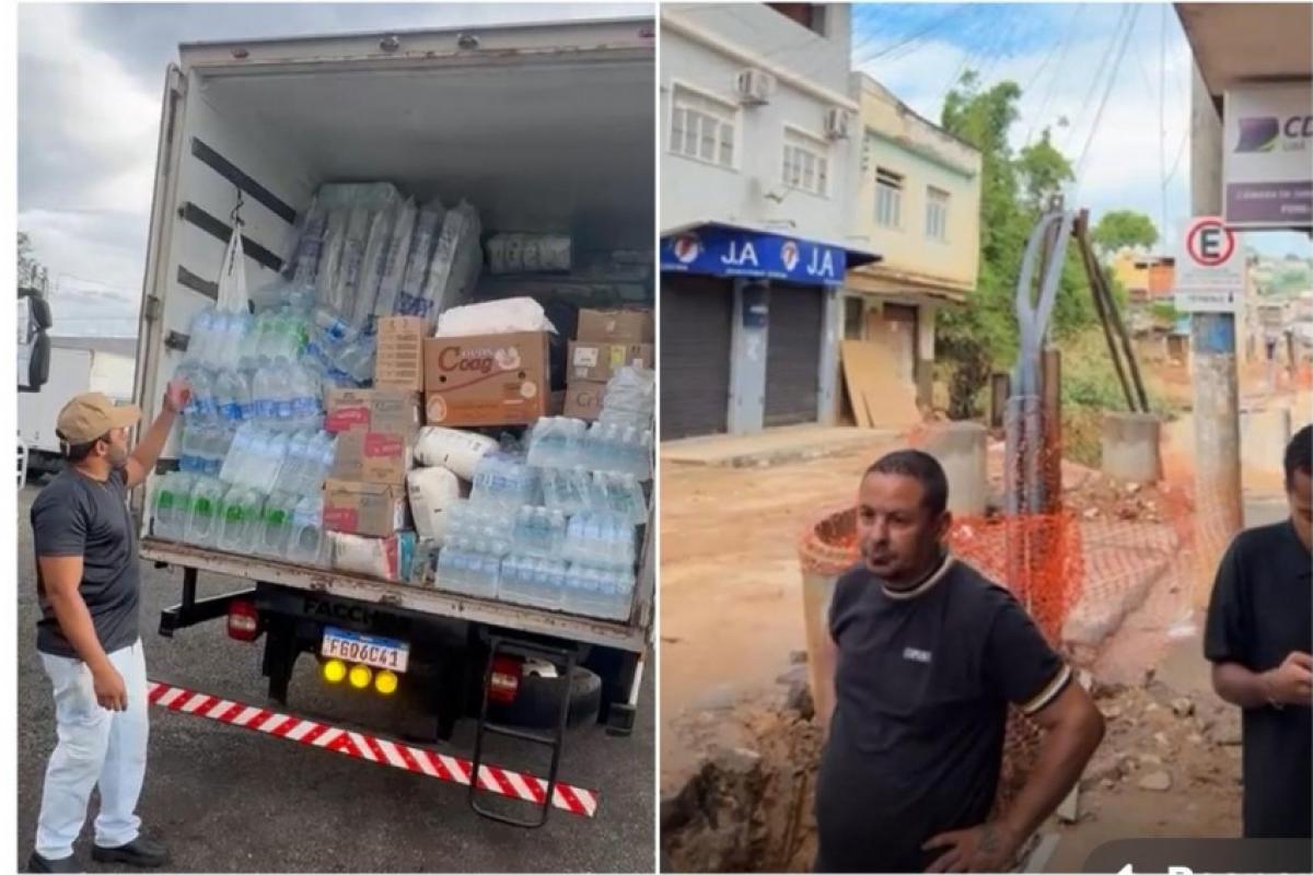 Em vídeos gravados durante a viagem, o empresário registrou o momento da entrega das doações e também mostrou os estragos causados pelas chuvas, com muita lama pelas ruas.