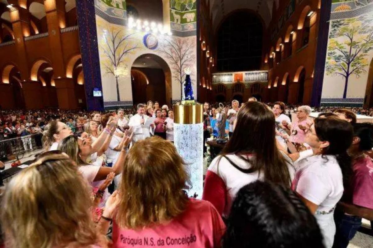 O encontro reúne missas, procissões, momentos de consagração e show mariano, levando as participantes a rezarem pelas famílias a partir do tema “Terço das Mulheres: Vivemos em família a alegria do amor!”.