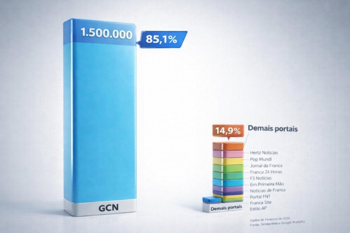 O Portal GCN, da rede Sampi, consolidou em fevereiro de 2026 sua posição de liderança absoluta no jornalismo digital de Franca e região. Com 1.512.680 visitas, 3.398.533 leituras de matérias e participação de 85,1% no mercado, o veículo praticamente não tem concorrência em termos de audiência: a distância para o segundo colocado supera 1.200%, segundo dados de SimilarWeb e Google Analytics.