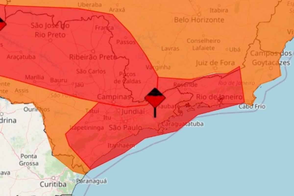 O Inmet (Instituto Nacional de Meteorologia) emitiu um alerta de nível vermelho, que indica grande perigo, para as cidades do Vale do Paraíba nesta quarta-feira (11).