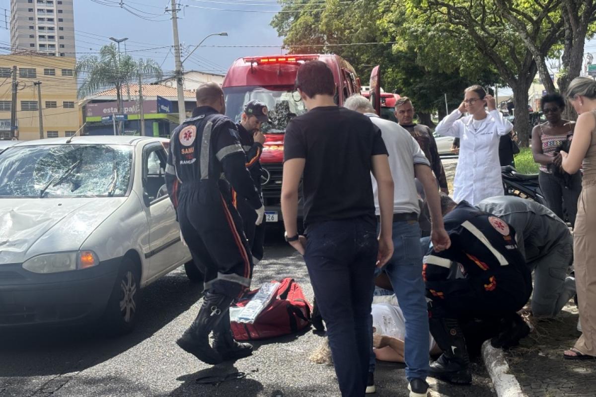 Um atropelamento na tarde desta terça-feira, 17, na avenida Major Nicácio, em Franca. Uma idosa de 71 anos foi atingida enquanto atravessava a via fora da faixa, sendo arremessada contra o para-brisa de um carro, que ficou destruído com o impacto. Ela sofreu fraturas na perna e braço esquerdo, além de um trauma na cabeça.