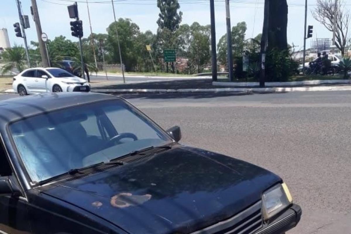 O carro furtado é um Chevrolet Monza, modelo conhecido como “Tubarão”, de cor preta. O veículo possui uma característica marcante: uma avaria no capô, com uma espécie de queimadura na pintura.