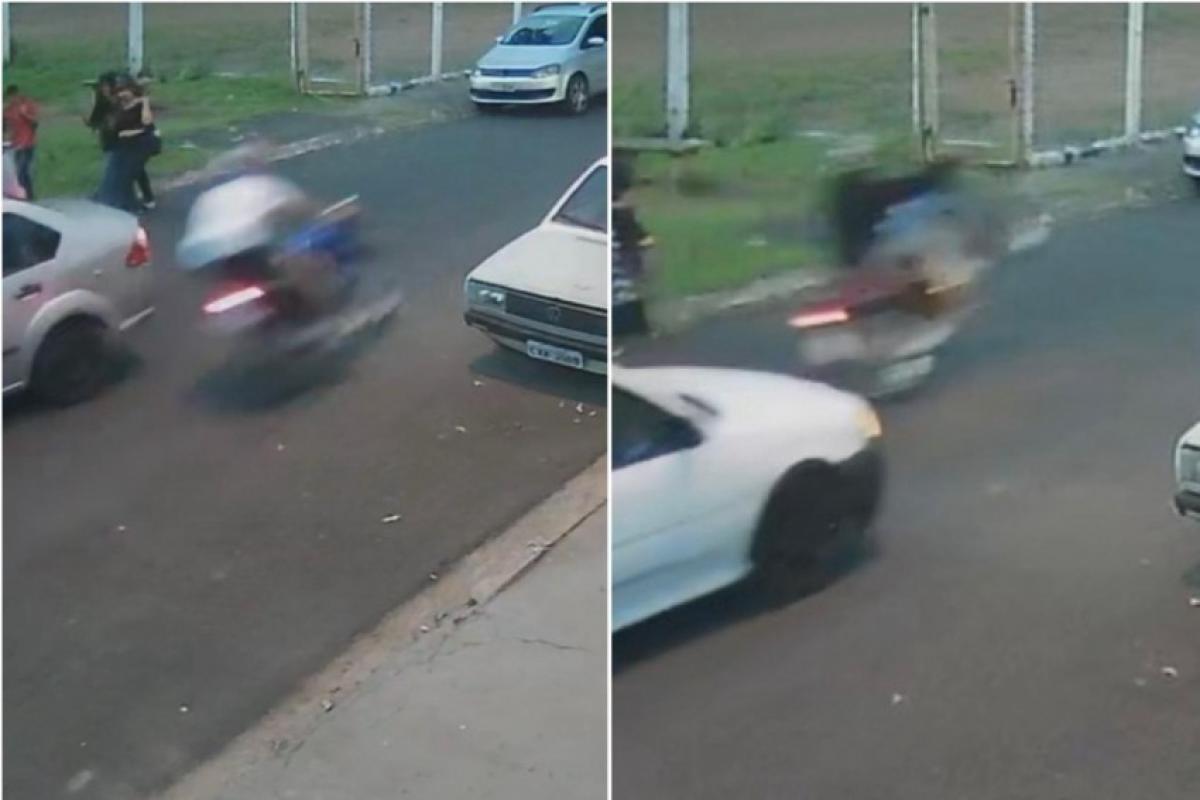 Nas imagens, é possível ver motociclistas empinando as motos enquanto estudantes deixavam a escola e caminhavam pela via, o que aumentava o risco de acidentes. Carros passavam pelo local no momento das manobras.