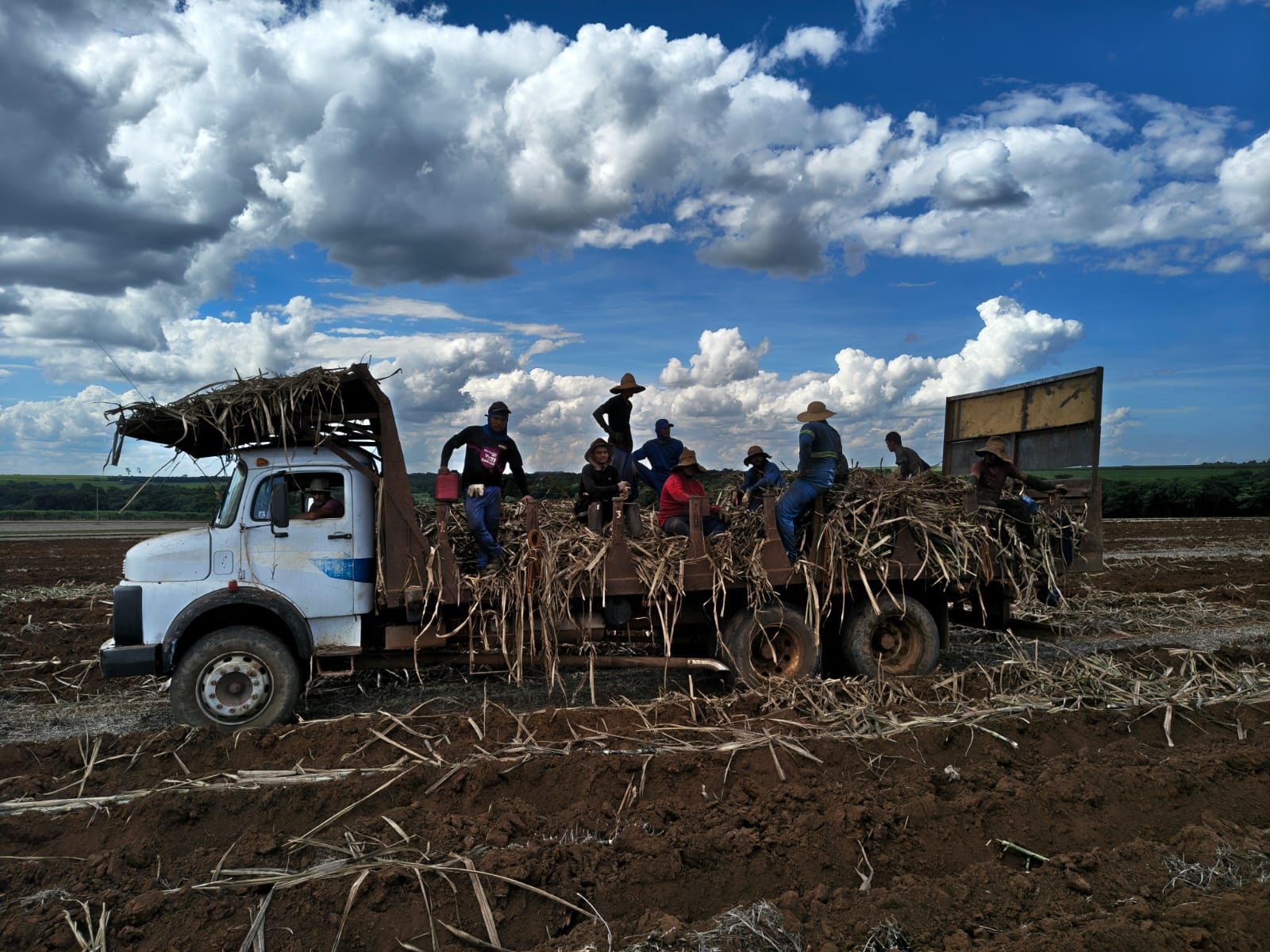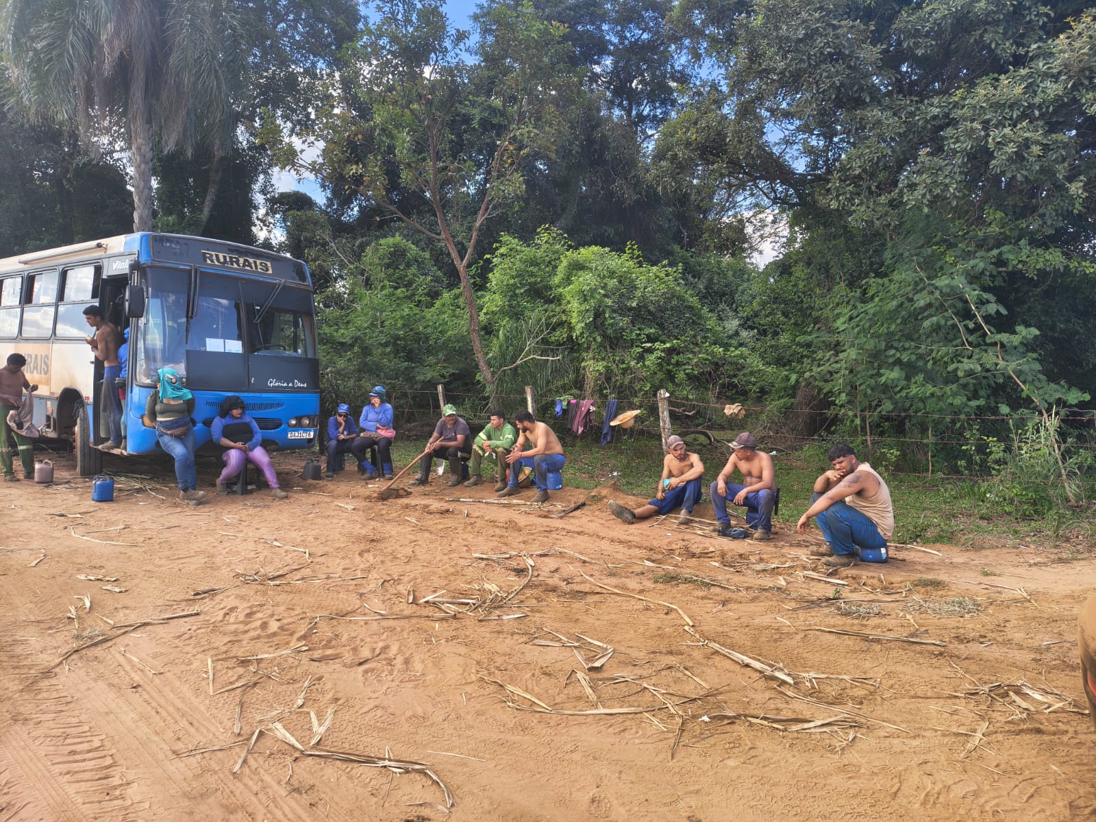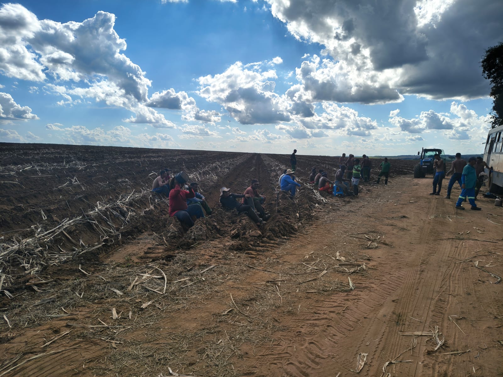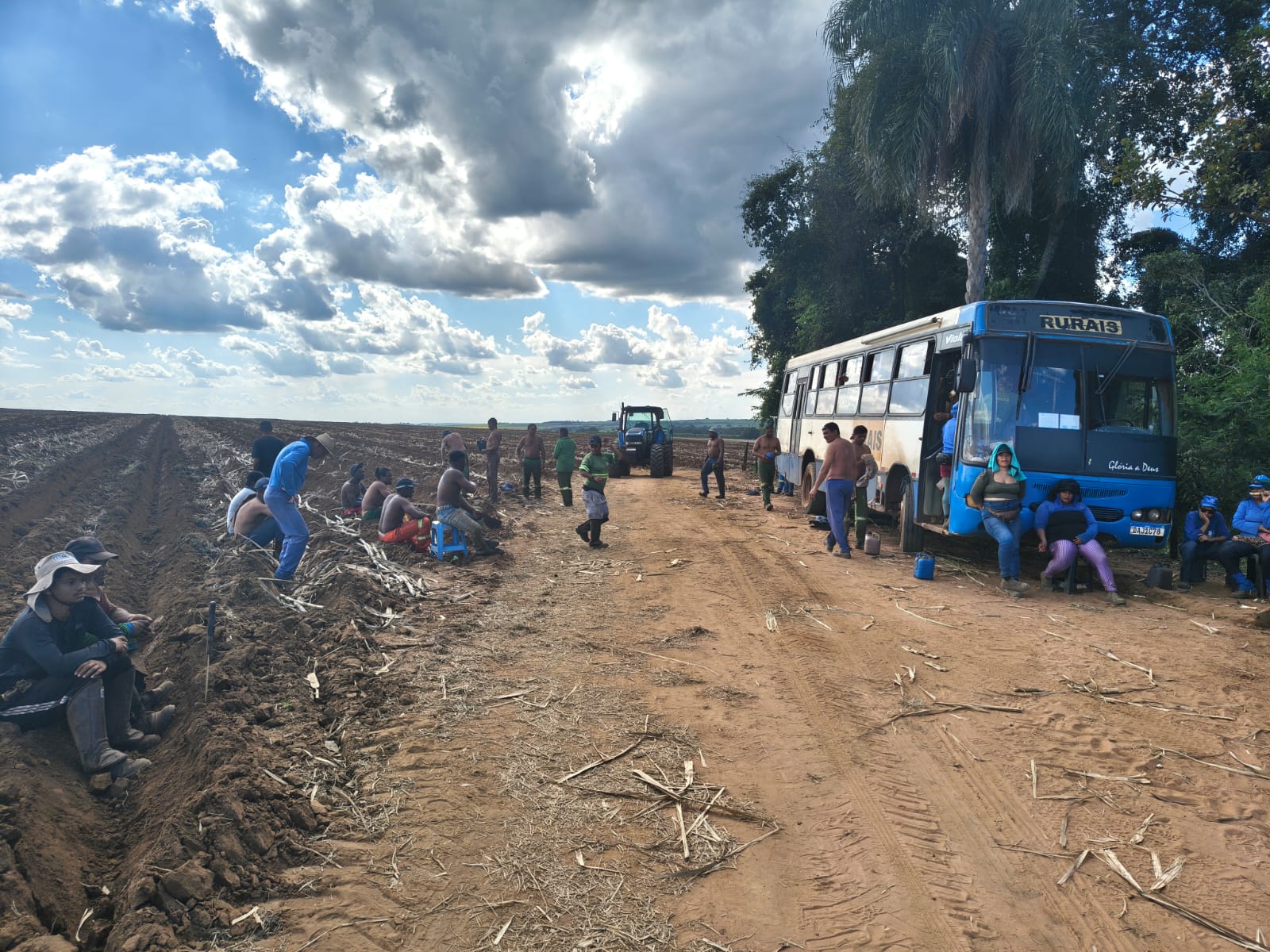 Na área de trabalho, os fiscais flagraram situações consideradas graves, como o plantio realizado com trabalhadores posicionados sobre um caminhão em movimento, expondo-os a risco iminente de queda. Também foram identificadas irregularidades como ausência de banheiros, falta de equipamentos de proteção individual (EPIs), inexistência de exames médicos admissionais e ausência de registro formal dos contratos de trabalho.
