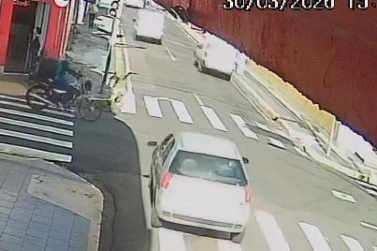 Um entregador de 60 anos ficou ferido após um acidente de trânsito, na tarde desta segunda-feira, 30, na esquina das ruas Major Claudiano e General Carneiro, no Centro de Franca. Uma câmera de segurança registrou a batida.
