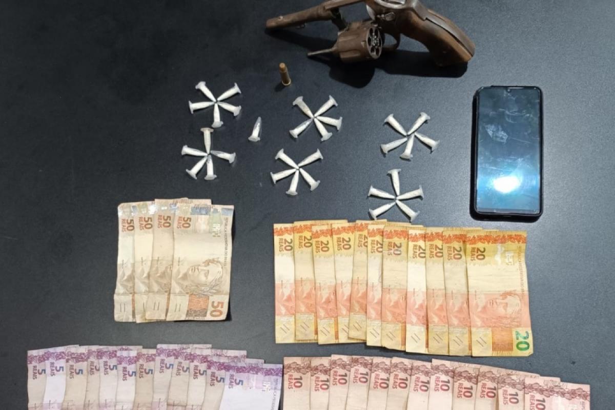 No imóvel, após autorização de entrada concedida pelo pai do jovem, os militares localizaram mais 28 pinos de cocaína, além de um revólver calibre .38.