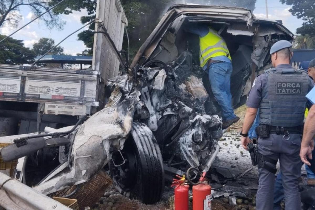 Um grave acidente foi registrado na tarde desta quinta-feira, 16, na rodovia Cândido Portinari, entre Batatais e Franca. Um caminhão perdeu o controle da direção e bateu de frente com outro caminhão, que estava carregado com laranjas. O impacto foi violento e provocou um incêndio logo após a colisão.