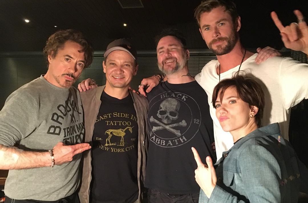 Robert Downey Jr. (o Homem de Ferro), Scarlett Johansson (Viúva Negra), Chris Hemsworth (Thor), Chris Evans (Capitão América) e Jeremy Renner (Gavião Arqueiro) aparecem em vídeos e fotos juntos em um estúdio de tatuagem.
