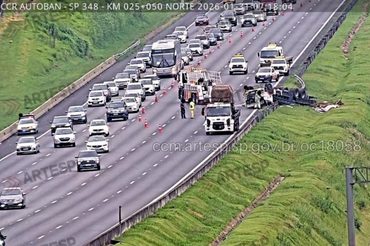 Caminhão carregado de vidro interdita Bandeirantes