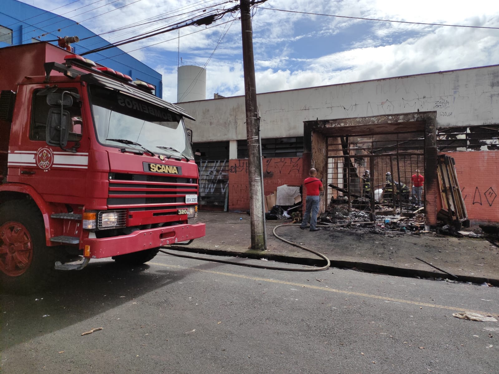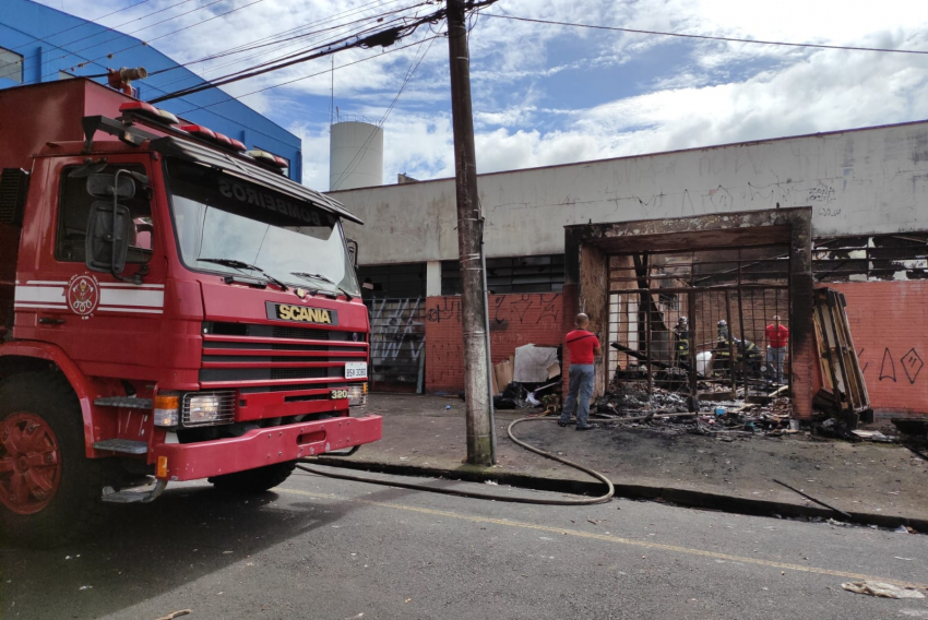 Quem passava pelo local, sentia o forte cheiro de fumaça e via os escombros do telhado caídos dentro do barracão e na calçada.