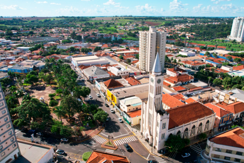 Vista aérea da parte central da cidade de Birigui