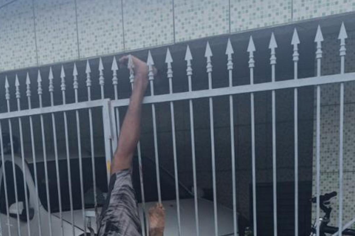Homem tenta pular portão de residência e fica preso pelos pés