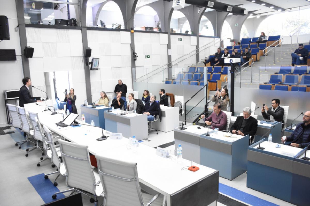 A Comissão Especial de Fiscalização e Acompanhamento das Políticas de Desenvolvimento Econômico e Revitalização da Região Central, criada na Câmara Municipal de Jundiaí, realizou, nesta quarta-feira (13), mais uma reunião com moradores e comerciantes para apresentar projetos voltados à tecnologia e inovação na região. A apresentação foi feita por integrantes da Fatec, da Associação de Tecnologia e Inovação de Jundiaí (ATIJ) e por diretores municipais.