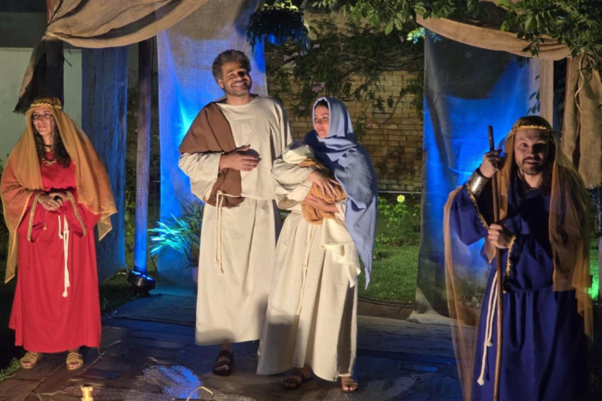 O Presépio Vivo, apresentado pela Cia Um do Outro, acontece até dia 23 de dezembro, às 19h30, nos jardins do Solar do Barão. Para mais informações, o contato pode ser feito pelo Instagram @ciaumdooutro.