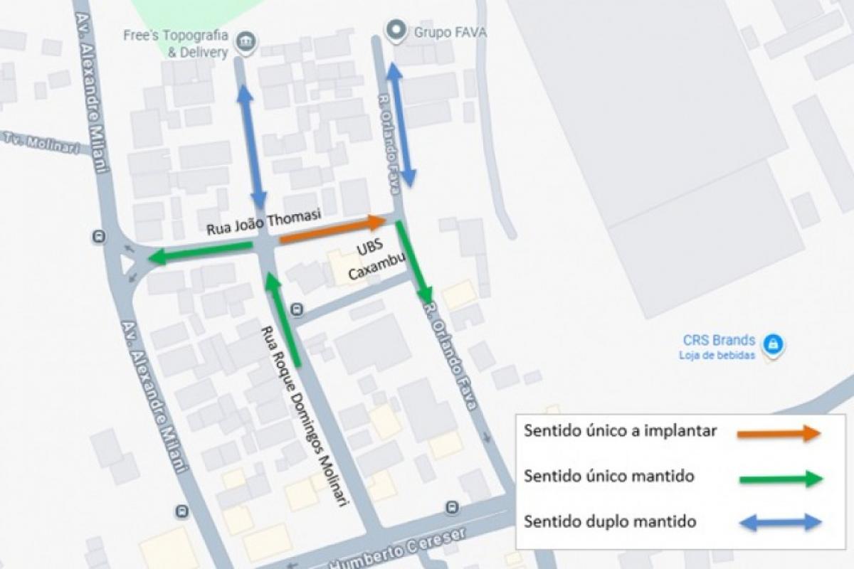 A mudança tem por objetivo organizar o fluxo de veículos no entorno da Unidade Básica de Saúde (UBS) Caxambu e aumentar a segurança dos usuários da via, além de ampliar a oferta de vagas de estacionamento na região. Serão mantidos os acessos para o bairro e à UBS pela rua Roque Domingos Molinari, com as saídas permanecendo na avenida Alexandre Milani e na rua Orlando Fava.